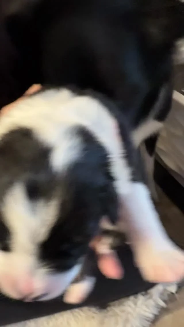 Bessie is a devoted and attentive mama. From the moment her puppies are born, she’s gentle, nurturing, and completely tuned in to their needs. She keeps a close eye on them, makes sure everyone’s fed and clean, and is never far from their side.